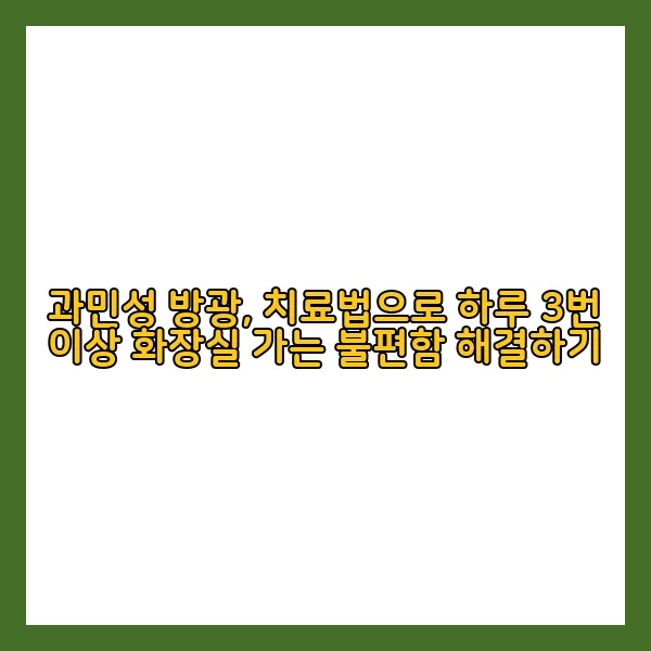 과민성 방광의 치료는 약물 치료, 생활 습관 개선, 기타 치료법 등 다각도로 접근해야 합니다.