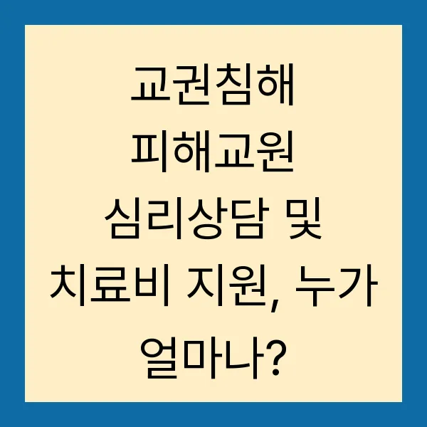 교권침해! 심각한 사회문제로 대두되고 있죠. 선생님들의 정신적 고통은 상상 이상이며, 교육 현장의 열정을 잃게 만드는 주요 원인이기도 합니다. 피해 교원의 심리적 안정과 교권 회복을 위한 지원, 절실한데요, 지원 내용과 비용 부담은 어떻게 될까요? 지금 바로 확인해보세요! (교권침해, 심리상담, 치료비 지원, 교원 지원, 교육활동 침해)