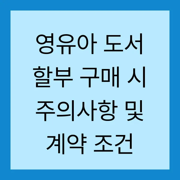 사랑하는 우리 아이를 위해 영유아 도서를 할부로 구매하려는 부모님들께, 오늘은 계약 시 주의사항과 놓치지 말아야 할 조건들을 꼼꼼하게 알려드리겠습니다. 똑똑한 소비자가 되기 위한 필수 정보, 지금부터 함께 알아볼까요?!