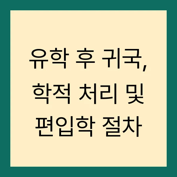 해외 유학을 마치고 귀국하신 여러분, 새로운 시작을 앞두고 설렘과 함께 복잡한 학적 처리와 편입학 절차에 대한 궁금증이 많으실 텐데요. 🤔 걱정 마세요! 이 글에서는 유학 후 학적 처리 방법과 편입학 절차에 대해 명확하고 상세하게 안내해 드립니다. 유학 유형에 따른 학적 관리부터 편입학 시 필요한 서류, 평가 방법까지, 여러분의 성공적인 국내 학업 복귀를 위한 모든 정보를 담았습니다. 꼼꼼하게 확인하시고, 궁금한 점은 언제든지 문의하세요! 😉
