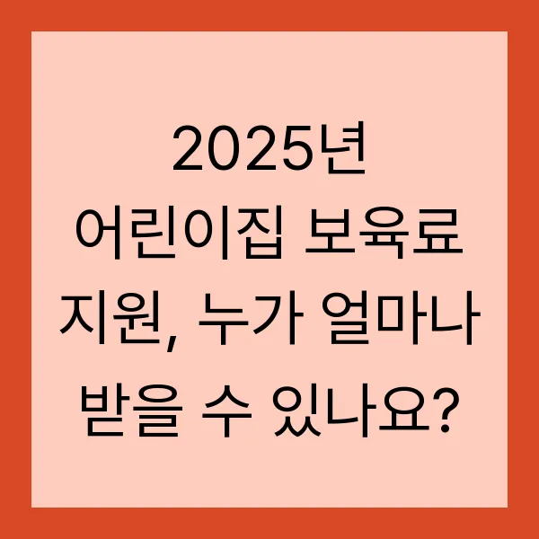 2025년 어린이집 보육료 지원, 누가 얼마나 받을 수 있나요?